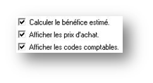 En ce qui concerne du prix d’achat et des codes comptables, ces options ne sont disponibles que lors de l’affichage d’une liste détaillée ou lors d’une ventilation par produit.