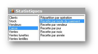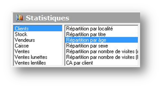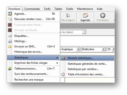 Son accès est également possible en sélectionnant l’option Module Statistiques du menu Fonctions/Statistiques :
