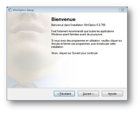 Pour installer WinOptics sur le système, il faut suivre les étapes indiquées ci-dessous :