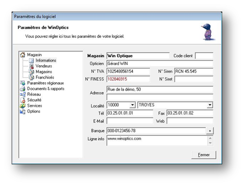 Le premier onglet Informations permet de préciser les coordonnées du magasin. Ce sont ces données qui seront reprises dans l'en-tête des documents (factures, reçus, etc.).