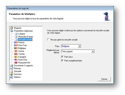 Sélectionner ensuite l’option Paramètres régionaux/Sécurité Sociale :
