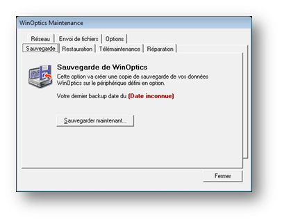 L'utilitaire de maintenance est un petit programme livré avec WinOptics et destiné à assurer la sauvegarde des données. Un icône est mis en place sur le bureau lors de l’installation de WinOptics pour accéder à cet utilitaire :