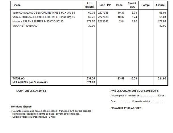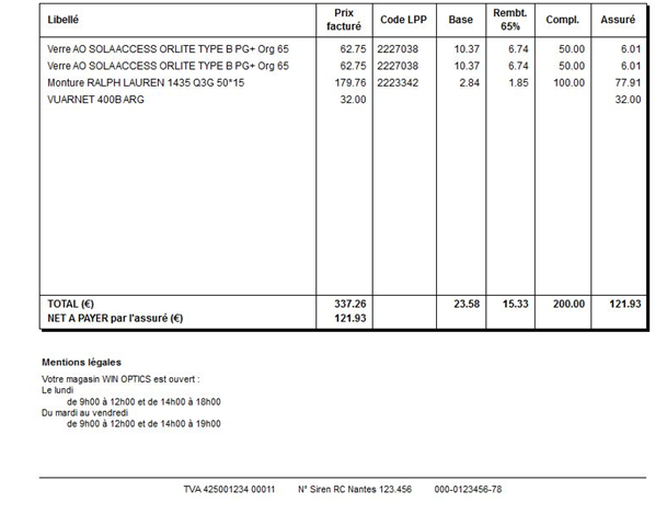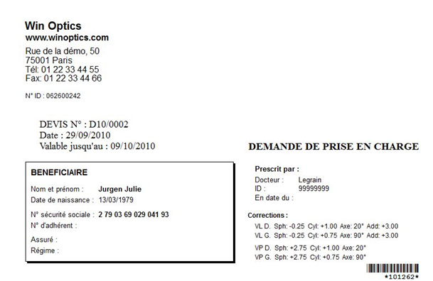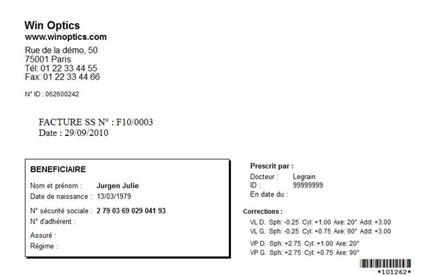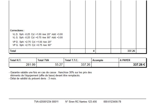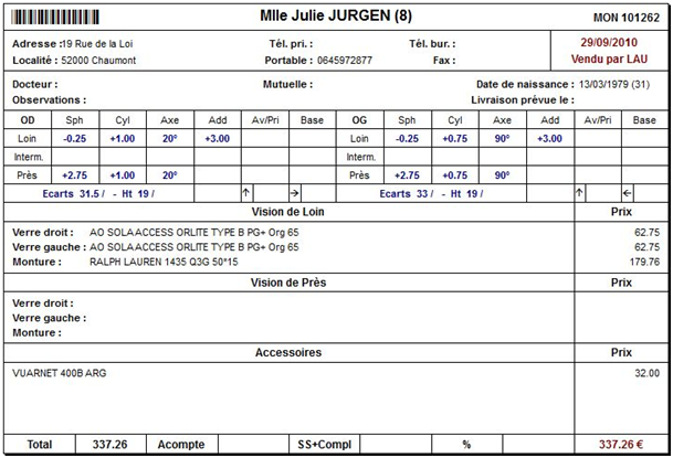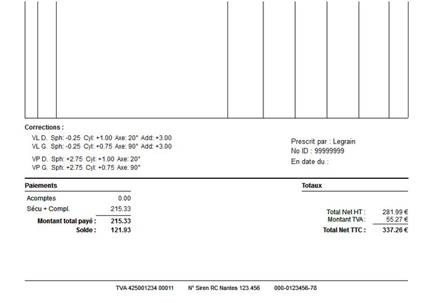 - Une fiche atelier vierge éditée à partir d’un dossier monture,