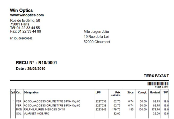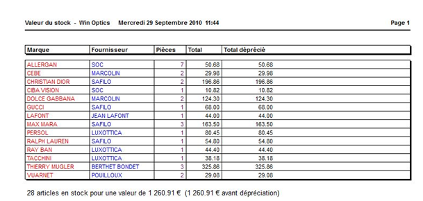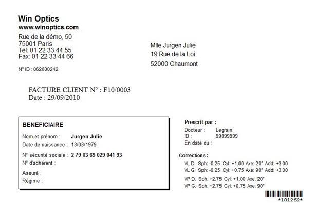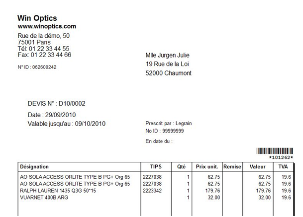Ci après sont regroupées différentes impressions effectuées avec WinOptics :