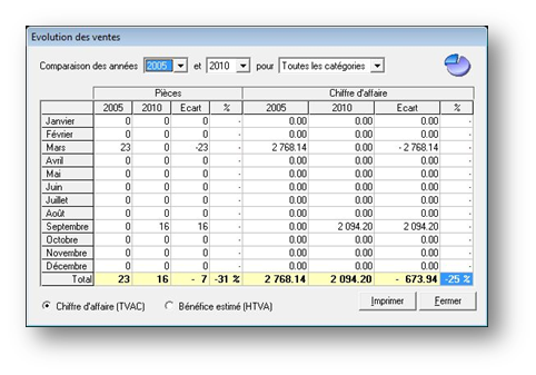 L’écran représentant le tableau comparatif des ventes apparaît immédiatement :