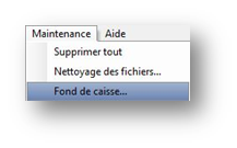 La première étape de l’utilisation de la caisse est son initialisation. Sélectionner pour cela l'option Fond de caisse du menu Maintenance :