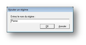 Pour ajouter un nouveau régime à la mutuelle créée, cliquer sur le bouton Ajouter à droite de la liste des régimes et entrer un nouveau nom :