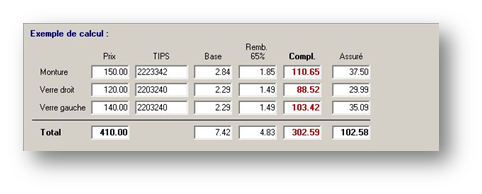 Exemples : Quel que soit le prix de vente de la monture le calcul de remboursement sera le suivant :
