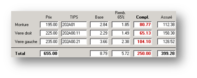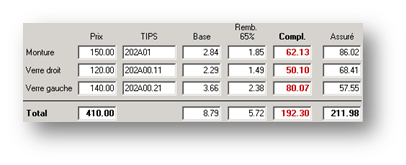 - Le champ % TIPS permet d’indiquer un remboursement de la mutuelle en fonction de la base de remboursement de chaque article par la sécurité sociale.