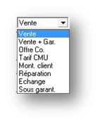A droite de la case contenant la référence de la monture se trouve un menu déroulant permettant de qualifier la monture selon différents cas :