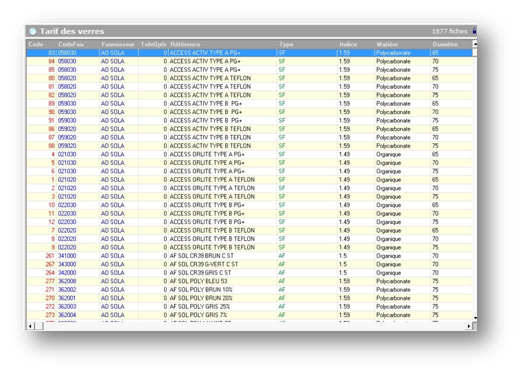 La consultation d’un verre de la liste se fait soit en double-cliquant sur le verre en question, soit en utilisant le bouton Consulter de la barre d’outils.