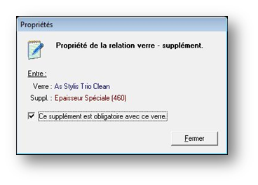 De retour sur l’onglet Supplément, il est possible de rendre certains suppléments obligatoires en cliquant sur le bouton Propriété et en cochant la case correspondante :