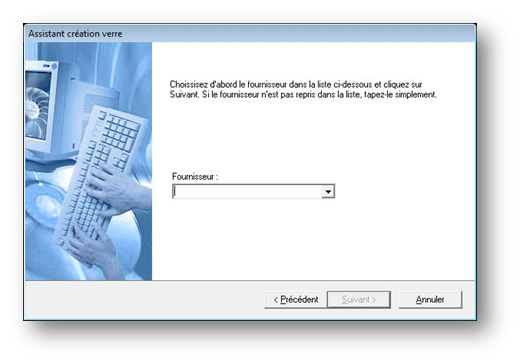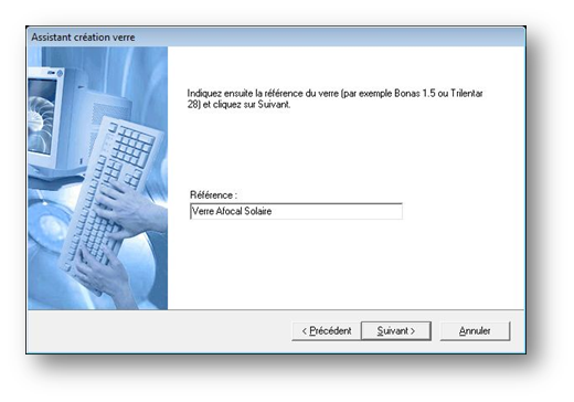 La seconde étape consiste à saisir la référence du verre (son nom) :