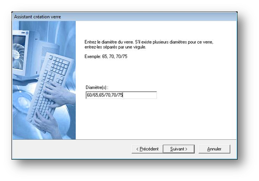 La saisie du diamètre vient à l’étape suivante. Il est possible d’entrer plusieurs diamètres en les séparant par une virgule :