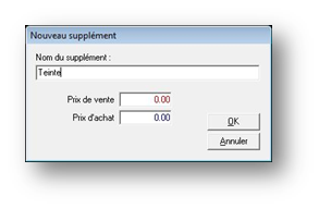 Il est très facile d’ajouter ou supprimer des suppléments dans cette liste en cliquant sur les boutons Ajouter ou Supprimer. Le bouton Ajouter fait apparaître l’écran suivant :