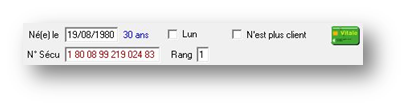 L'utilisation du lecteur dans WinOptics est très simple. Une icône représentant une carte Vitale apparaît sur la fiche client (à condition d’avoir coché la case « Utiliser un lecteur vitale » dans les paramètres) :