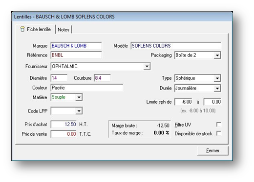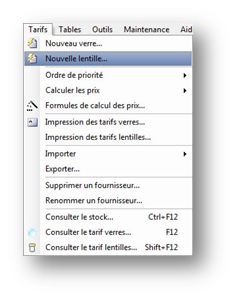 La gestion des tarifs lentilles est pratiquement identique à celle des verres, bien que plus simple, vu qu'il n'y a ni supplément, ni grille de prix dans le cas des lentilles.