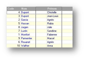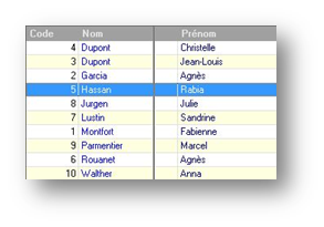 Dans l’exemple ci-dessus, les données seront triées en priorité sur le nom de famille, ensuite par prénom. L'ordre de tri est fonction de l'ordre des colonnes. Pour trier en premier sur le prénom, il faudra déplacer cette colonne avant celle du nom, comme cela a été décrit dans le paragraphe précédent.