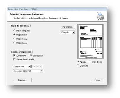 Cliquer sur le bouton Imprimer pour lancer, selon le choix effectué, un aperçu avant impression, une impression directe ou un duplicata.