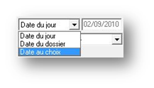 La date proposée pour l’édition du devis est par défaut la date du jour. Il est possible de la modifier en sélectionnant dans le menu déroulant, soit la date du dossier (c’est à dire du devis), soit une date au choix.