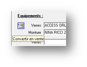 Une fois le devis accepté par le client, il est possible de convertir directement le devis saisi en fiche visite monture. Pour cela, cliquer simplement sur l’icône se trouvant à gauche de l’équipement choisi par le client :