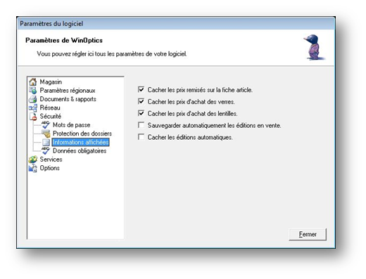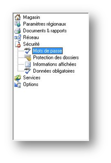 Cette option permet de mettre en place des mots de passe pour l’accès aux données, mais également de paramétrer les informations affichées, celles qui sont obligatoires lors de la saisie, etc. Ces points sont particulièrement importants pour limiter l’accès au logiciel aux personnes concernées et pour la confidentialité des informations.
