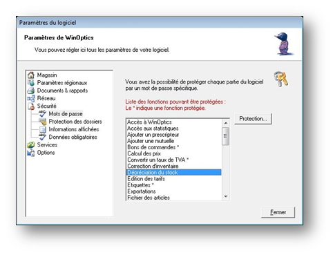 WinOptics permet de protéger l’accès aux données en définissant des mots de passe pour l’accès à certaines zones sensibles de l’application :