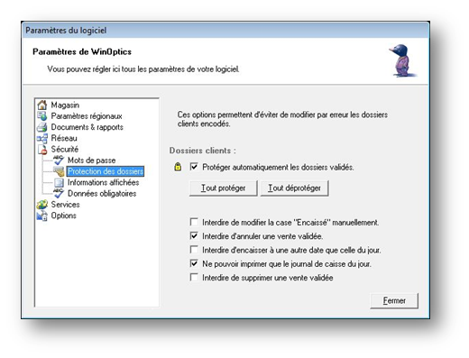 Cette option permet d’interdire certaines actions et surtout d’utiliser la fonction de protection des dossiers validés :
