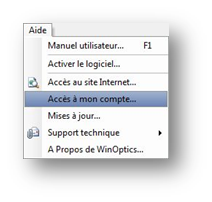La première étape pour importer un tarif dans la base WinOptics est de télécharger le tarif recherché à partir du site Internet. Pour cela sélectionner l’option Accès à mon compte du Menu Aide :