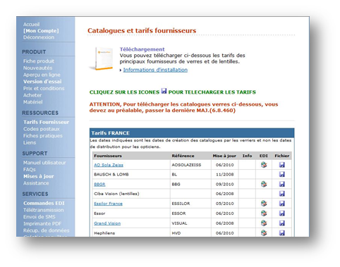 Remarque : Seuls les utilisateurs à jour de leur contrat de maintenance peuvent avoir accès au téléchargement des verres depuis le compte personnel. Le renouvellement du contrat de maintenance peut se faire en ligne ou en contactant le service commercial.