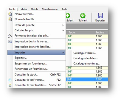 Une fois le téléchargement terminé, l’import des catalogues se fait ensuite en sélectionnant l’option Importer du menu Tarifs :