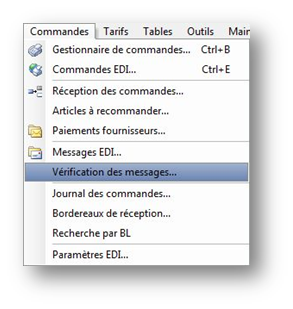 Vous devez dans un premier temps vous rendre dans le menu « Commandes/Vérification des messages » afin de récupérer depuis la plateforme Eyes Road la liste des derniers catalogues disponible.