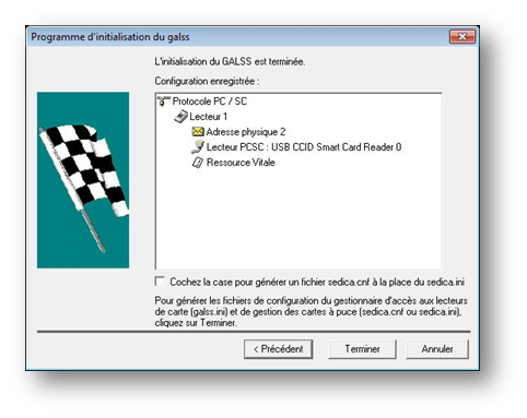 Une fois la configuration terminée, cliquer sur Terminer pour enregistrer les modifications dans le fichier GALSS.INI.