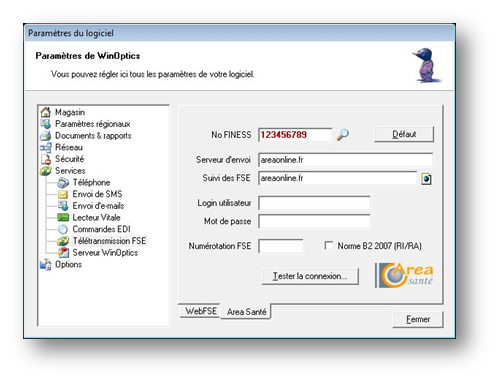 Ce chapitre a pour but de présenter la configuration du compte Area Santé dans WinOptics qui va permettre d’effectuer les télétransmissions sécurité sociale.