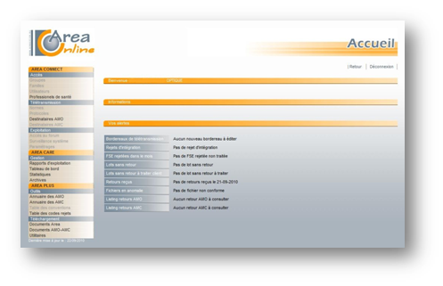 Avant de pouvoir commencer à télétransmettre, il faut s’inscrire au service Area Santé afin que nous puissions ouvrir un compte. Le service Area Santé est payant et nécessite un abonnement. Les tarifs sont disponibles sur notre site Internet. L’inscription se fait en nous faisant parvenir la demande par mail en précisant votre numéro FINESS ainsi que la CPAM concernée.